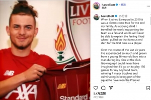 埃利奥特社媒告别:2019年加盟利物浦是梦想成真,现在最需要出场