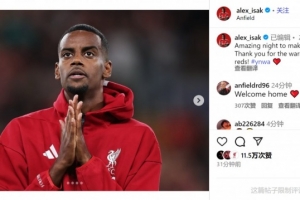 此役伊萨克首发出战,上演利物浦首秀,赛后他在社交媒体上写道:“在美妙的夜晚迎来我的首秀,感谢红军球迷们的热情欢迎!ynwa❤️”