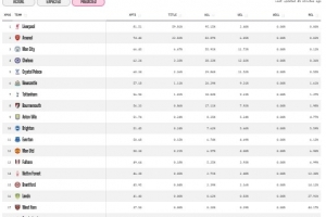 以下为英超各队夺冠概率具体预测情况(仅统计概率超1%球队):