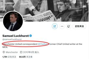 卢克赫斯特的个人账号简介已经改为:“太阳报曼联跟队记者,前曼晚首席曼联跟队。”