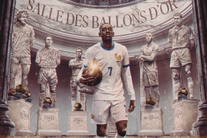 法国队社媒晒出海报,登贝莱跻身科帕、普拉蒂尼、帕潘、齐达内、本泽马的行列,成为第6位赢得金球奖的法国球员。
