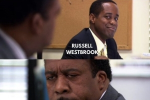 美媒恶搞:首发控卫受伤后杜兰特神情低落,威少向他抛媚眼......