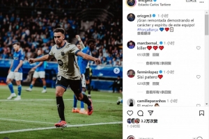 埃里克-加西亚在社交媒体上晒出比赛照片,并配文:“精彩的逆转,展现了球队的韧性与斗志!”