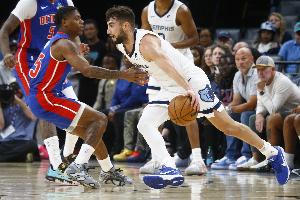 体育资讯10月12日讯 NBA季前赛,灰熊半场54-63落后老鹰。
