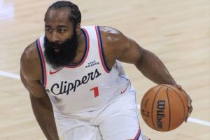 比赛第四节,哈登拿到第10个篮板,达成三双。
